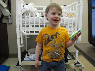 Back to the hospital! He loved the playroom and was right at home there.
